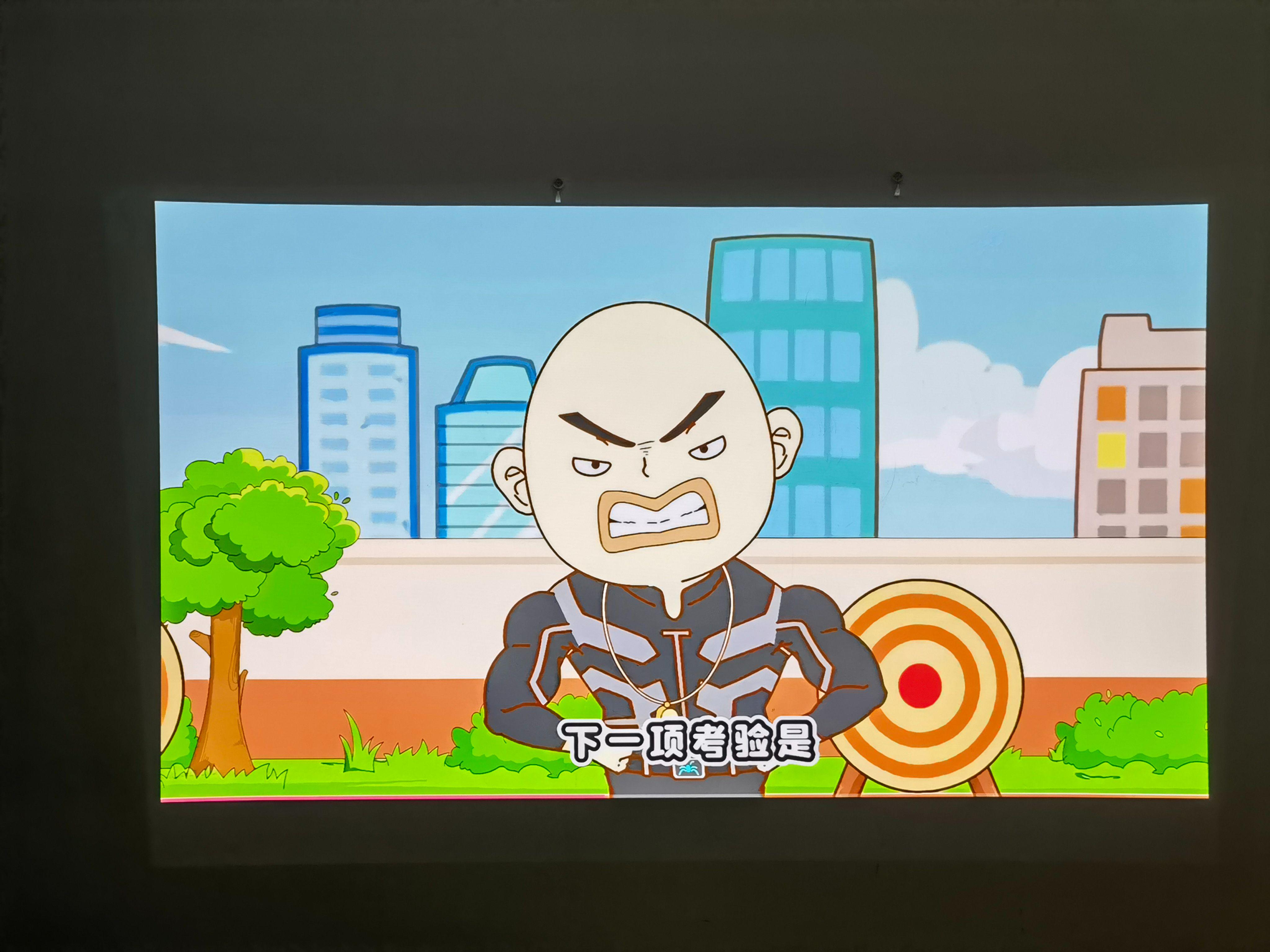 再就是白天场景,投影的效果依旧明显,并且不管是放大界面,还是缩小界面,显示都相当清晰,这么一看,光学变焦镜头和2300ANSI流明的亮度,带来的实际效果还是非常给力的。