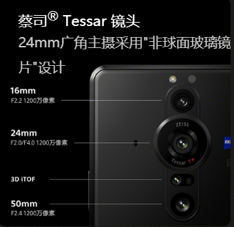 首先来看Xperia PRO-I的主摄镜头,并非传统的塑胶镜头,而是采用了非球面玻璃镜片的24mm蔡司天塞镜头,由于成本、重量、大规模生产等原因,目前市面上绝大部分手机镜头都是塑胶镜头,但玻璃镜头有着更多阿贝数和折射率选择,从光学的角度来说,依然好于塑胶镜头,大多用在单反相机等高端领域,索尼用上玻璃镜头,也符合Xperia PRO-I微单手机的身份。