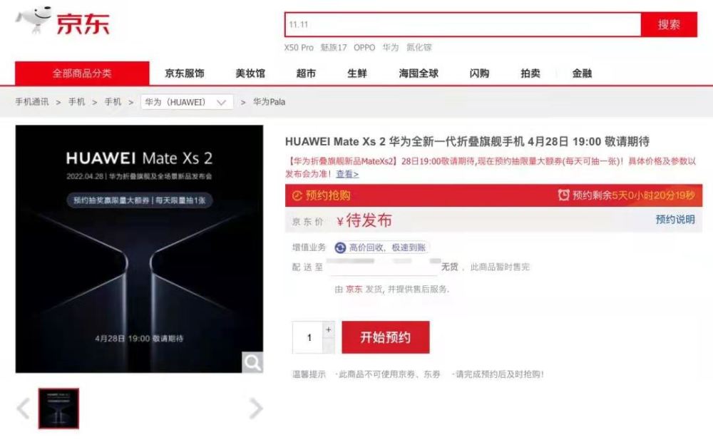 随着新品发布时间的正式官宣,这款全新的华为Mate Xs2折叠屏旗舰也正式上架了电商平台,并开启了新品预约。