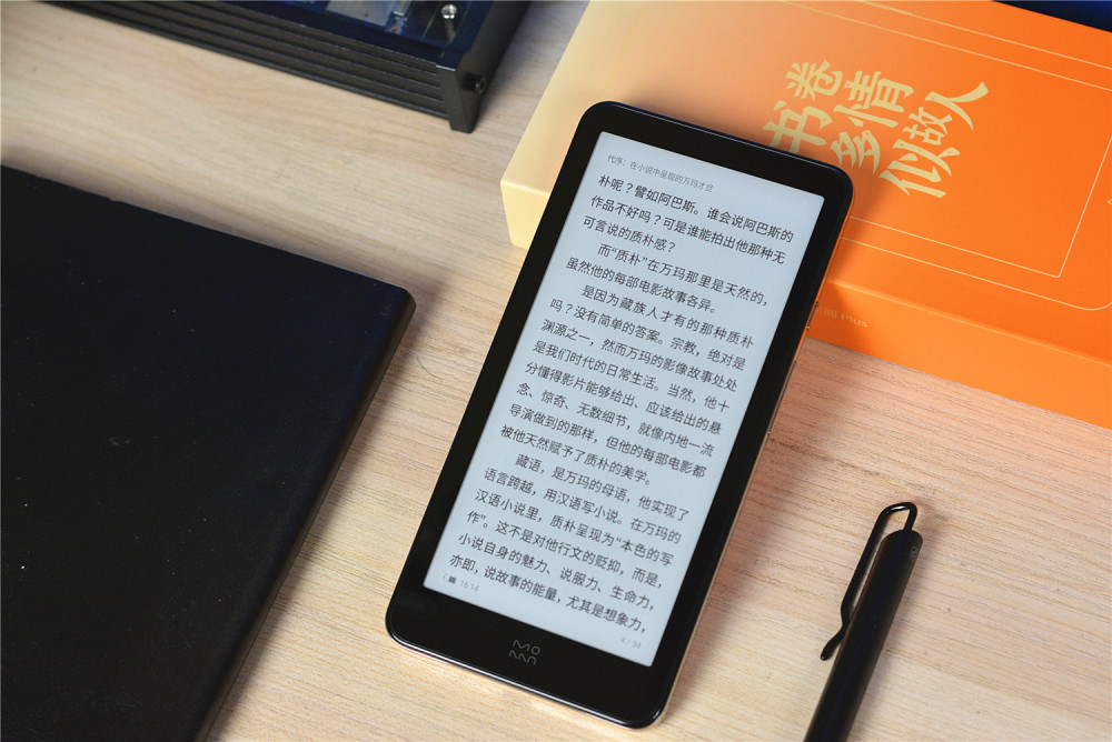 墨水屏不会发光,显示的过程中也不会耗电,而实际使用起来,也和我们平时看的纸质书籍无异,在看电子书籍的时候,这种黑白分明的显示效果,也会让你感受到纸质书籍的既视感。并且更重要的是,墨案迷你阅Plus的重量只有140克,长时间阅读,比实体书籍要轻松许多。