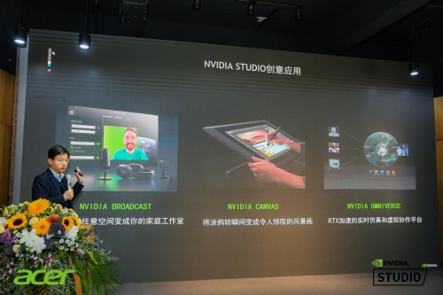 在17日上午的主题演讲环节中,宏碁高级产品经理罗子南和宏碁ConceptD品牌经理潘晶以《科技变革推动数字艺术发展》为主题进行了分享。罗子南提到宏碁ConceptD设计师电脑的功能特性。产品采用NVIDIA RTX 显卡,帮助创作者更快的设计,屏幕色差小,工作静音,外观优美流畅。每块 NVIDIA GPU 都有免费的专属 Studio 驱动加持,可持续改进用户体验。它们久经考验、稳定可靠,并经过广泛测试,可助用户轻松处理大型复杂项目。