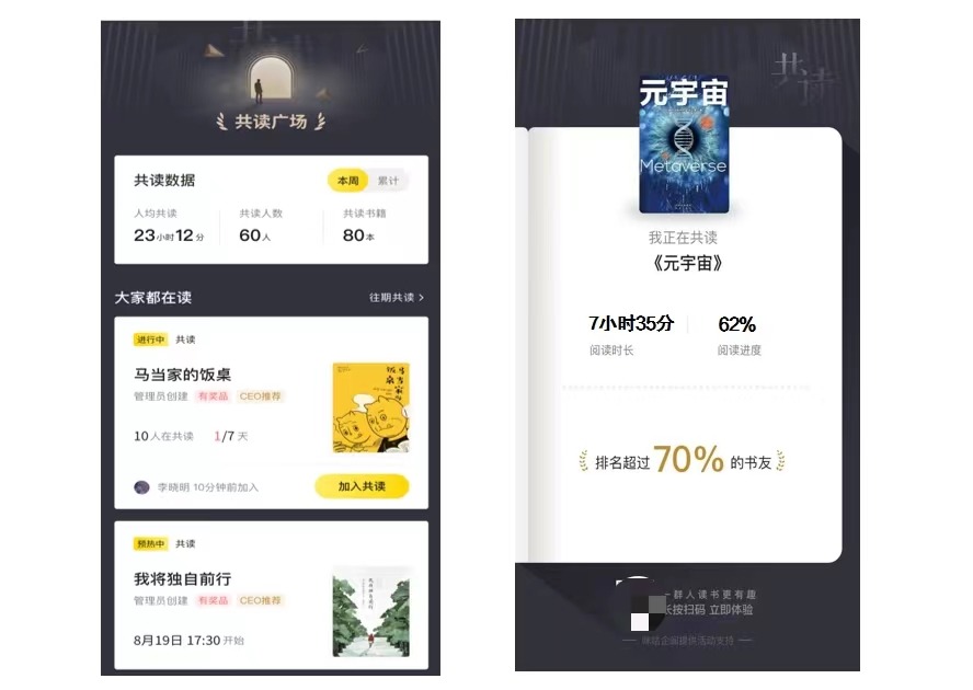 三是管理数字化和学习可视化。传统企业阅读、企业培训都有一个最大痛点,即员工具体学习情况和效果很难获取。这就意味着无法考核和激励,形成正向循环。